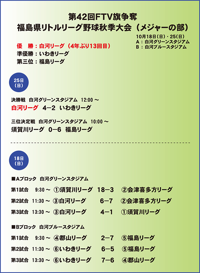 第42回FTV旗争奪福島県リトルリーグ野球秋季大会(メジャーの部)